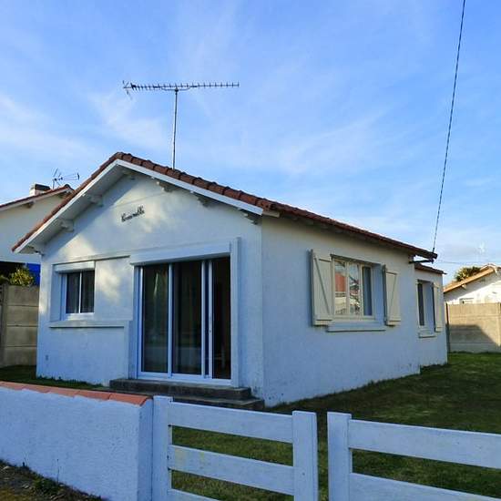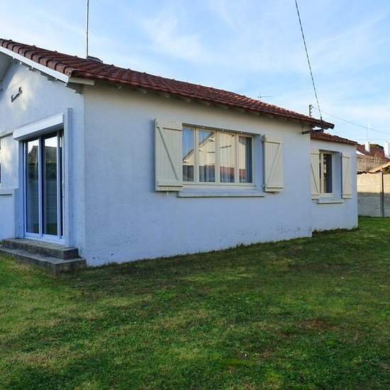 LOCATION VACANCES et TARIF A LA SEMAINE - Maison 50 m² située dans le quartier de la Birochère à Pornic. Centre commercial à 800 m, plage et chemin côtier à 100 m. Salon-séjour 20 m² avec TV, cuisine avec four, 1 chambre à lit double (140 cm), 1 petite chambre à 2 lits superposés (2X90 cm), Salle d' eau (douche) avec wc. Aménagement et décoration simple. Jardin clos : 240 m², parking 2 voitures dans le jardin. salon de jardin, barbecue. Tarif annoncé à la semaine, en basse saison,