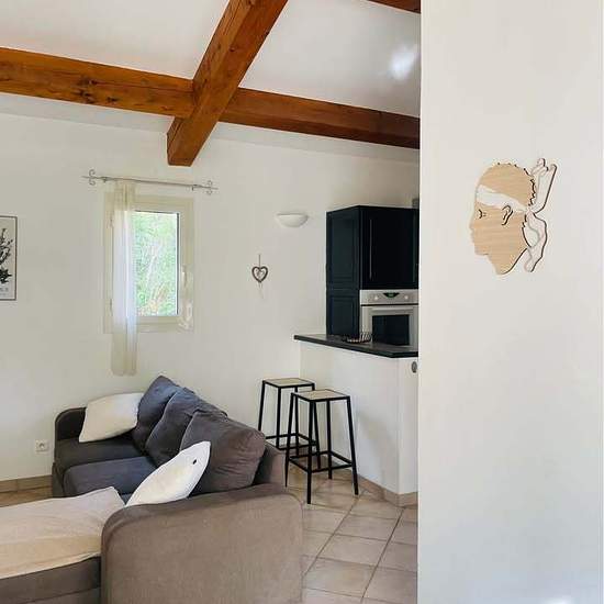 PORTO VECCHIO PALOMBAGGIA À louer villa pouvant accueillir maximum 6 personnes, 2 chambres, entièrement équipée et climatisée, avec piscine (12m x 6m), commune, partagée avec 7 autres mini villas. La villa est composée de : Une chambre avec un lit de 160 Une chambre avec 2 lits de 90 Lit bébé à disposition Cuisine équipée : Four, micro-ondes, lave-vaisselle, lave linge, bouilloire, cafetière etc… Un grand séjour : Canapé lit BZ par 140, télévision. Une salle d’eau (douche hydro massage) Un WC séparé Une terrasse aménagée avec son barbecue 2 ...