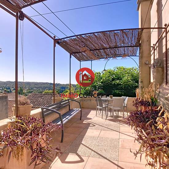 MAISON COUP DE COEUR Maison de caractère MEUBLEE En plein coeur du village de Pujaut. Maison de village sur 3 niveaux, pleine de charme, entièrement meublé avec goût. Entrée dans le séjour, salle à manger, cuisine aménagée et équipée avec une terrasse à l'abri des regards, plein sud. Au 1er étage une belle chambre et une salle de bain (avec vue de la baignoire) donnant sur une magnifique terrasse ombragée avec vue panoramique. Au dernier étage une chambre de 24 m2 avec sa salle d'eau et une vue imprenable. Un sous sol cave avec buanderie de ...