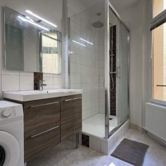 Appartement 3 pièces meublé, situé au 1er étage sans ascenseur d'une petite copropriété bien entretenue. Il comprend une entrée, un séjour, une cuisine aménagée et équipée (four, plaque de cuisson, hotte, réfrigérateur, micro - onde), deux chambres* (lit, bureau, armoire de rangement), une salle de douche (avec machine à laver) ainsi qu'un WC séparé. *La 2ᵉ chambre sera également aménagée (lit, bureau, armoire de rangement). Chauffage individuel au gaz. Loyer hors charges : 825,00 € Provisions sur charges : 65,00 € (comprenant : eau, TEOM, e...