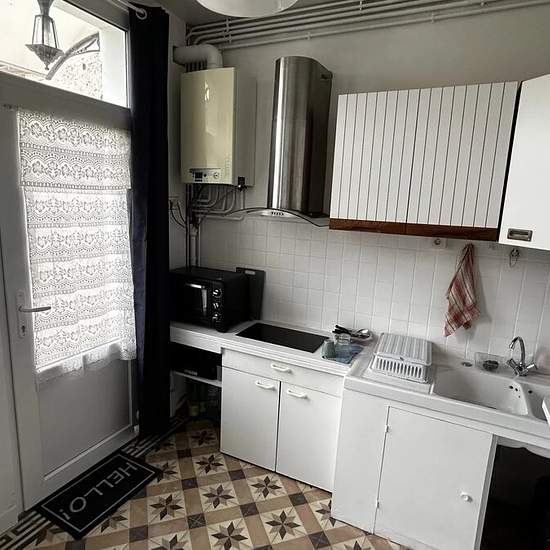 A louer 660€/mois C.C. Maison meublée comprenant une entrée de 5,58m², une cuisine équipée et aménagée de 7,94m², un séjour de 17,44m²m², WC ; Au premier étage un palier de 6,45m² dessert une salle d'eau de 6,46m² avec WC et 2 chambres parquetées de 9,11m² et 12,34m². Chauffage gaz de ville. Double vitrage PVC. Volets roulants électriques au RDC. Jardin clos de 140m² avec cabanon Disponible à partir du 15/12/2025.
