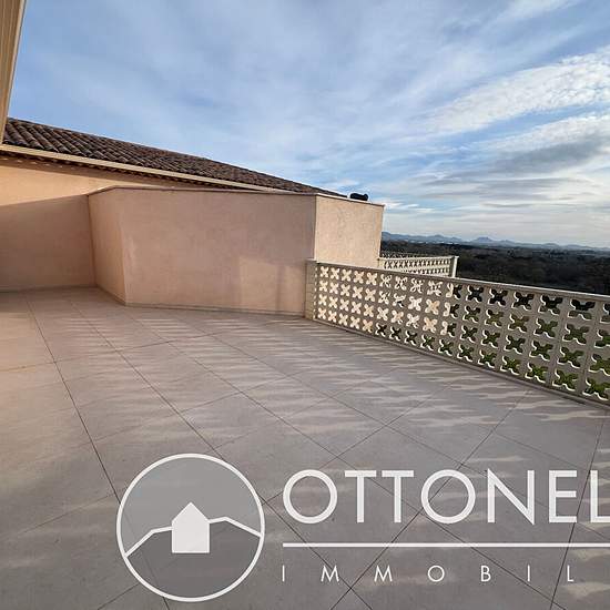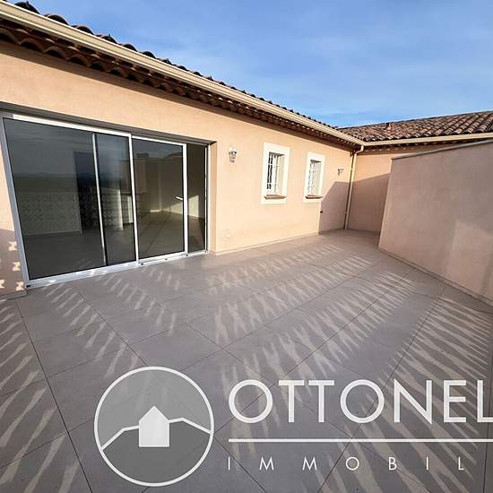 Maison climatisée de 65,6 m² mitoyenne d'un côté par le garage : elle se compose d'un séjour avec une cuisine ouverte aménagée (hotte et plaques de cuisson, meubles) donnant sur terrasse, un jardin, deux chambres dont une avec dressing, une salle d'eau avec wc, un dégagement et un garage. Libre de suite. Loyer : 1374 euros + 25 charges (ordures ménagères) - dépôt de garantie : 1374 euros + 824,40 euros d'honoraires. Pour toute demande de visite ou renseignement, contactez l'agence ottonello de roquebrune sur argens au .