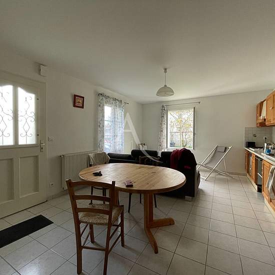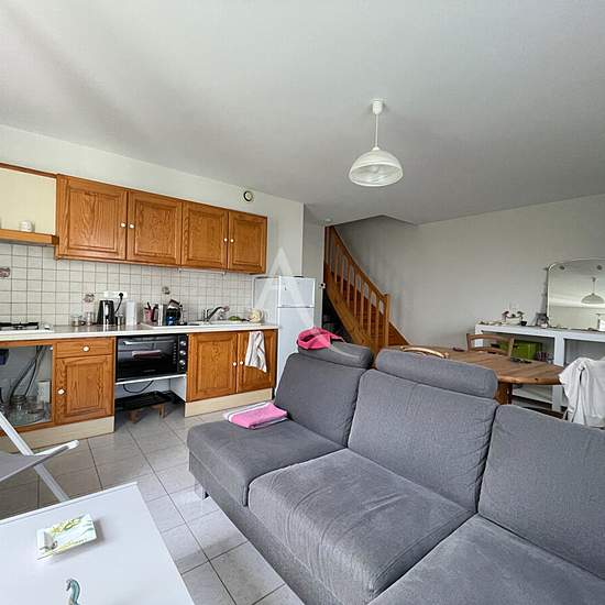 Petite maison au sein d'une résidence, jardin commun, proche du centre-ville et du Netto. Elle se compose au rez-de-chaussée d'une entrée donnant sur le séjour avec une cuisine ouverte aménagée et équipée (plaque, hotte), d'un cellier et de WC. A l'étage : deux chambres et une salle d'eau avec WC. Une place de parking. Chauffage au gaz. Disponible ! Pour tout complément d'information merci de contacter le service location au . Copropriété de 15 lots - dont 15 lots habitation.().
