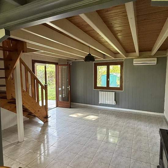 Charmante maison en bois de 55 m² habitables sur un terrain clos de 700 m², située dans un quartier résidentiel paisible de Sanguinet. Séjour lumineux avec poêle à bois, cuisine aménagée, salle d’eau rénovée avec douche moderne, une chambre et une pièce mansardée (inférieure à 9 m² habitable) à l’étage. Climatisation neuve installée le 18/06/2025. Carport, cabanon, abri/atelier, barbecue extérieur. Terrain arboré et entièrement clôturé. Loyer : 950 € charges comprises. Dépôt de garantie : 1 mois de loyer. Honoraires agence : 612,26 € TTC. Id...