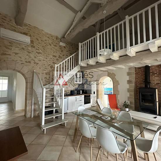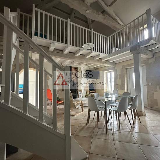 LIBRE DE SUITE - BAIL MEUBLE Venez découvrir cette charmante maison en location meublée, offrant un cadre de vie agréable et paisible, idéale pour les amateurs de calme et de nature. Elle se compose d'un salon/séjour lumineux agrémenté d'un insert fonctionnel, parfait pour des moments chaleureux, ouvert sur la cuisine entièrement meublée et équipée. La partie nuit comprend deux chambres, chacune disposant de sa propre salle d'eau, garantissant confort et intimité. Vous bénéficierez également de deux WC indépendants. Une mezzanine vient compl...