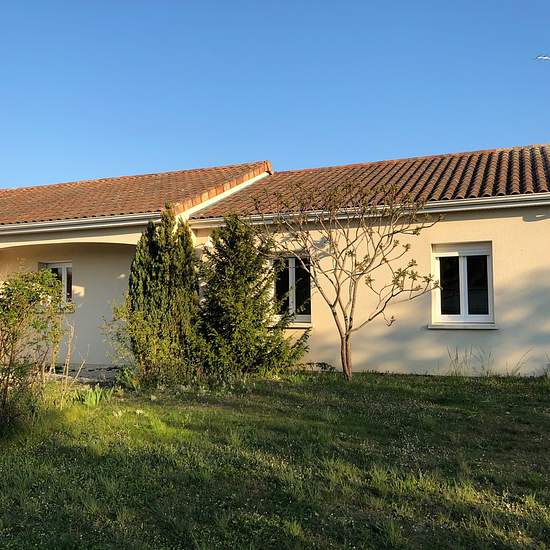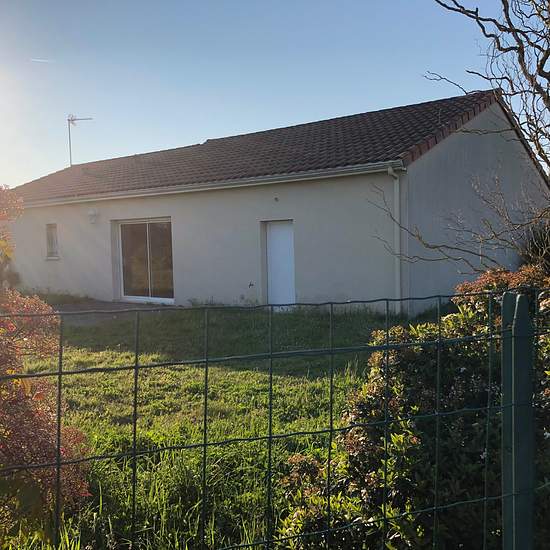 Pavillon de plain-pied à la campagne avec entrée, séjour, cuisine américaine, aménagée, trois chambres, salle d'eau, WC. Garage. Jardin d'environ 900 m2.