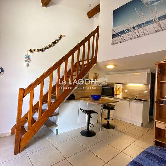 Jolie maison MEUBLÉE d'environ 46 m² (S.U.) comprenant au rdc : un séjour-salon avec coin cuisine équipée neuf, 1 vaste chambre avec un espace mezzanine permettant 2 couchages supplémentaires, une salle d'eau avec douche à l'italienne, un wc indépendant. À l'étage : une chambre fermée avec rangement de 9,95 m² exposée plein SUD. La maison dispose d'une jolie terrasse partiellement couverte d'environ 48m² également utilisable en parking privatif. Climatisation réversible, AUCUN TRAVAUX À PRÉVOIR Parking privatif inclus. Loyer mensuel : 850 ¤ ...