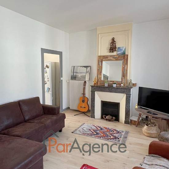 A LOUER En plein coeur du centre-ville, à proximité immédiate des commerces et de la plage, découvrez cette maison de ville répartie sur trois niveaux. Elle se compose : Rez-de-chaussée : une entrée. 1er étage : une cuisine indépendante (possibilité d'ouverture sur le séjour), une passerelle avec accès cour extérieur, et un salon-séjour lumineux avec cheminée décorative apportant cachet à la pièce. WC indépendants. 2e étage : deux chambres, chacune disposant de sa salle d'eau privative. En complément, une grande cave de 41,20 m2 offre un bel...