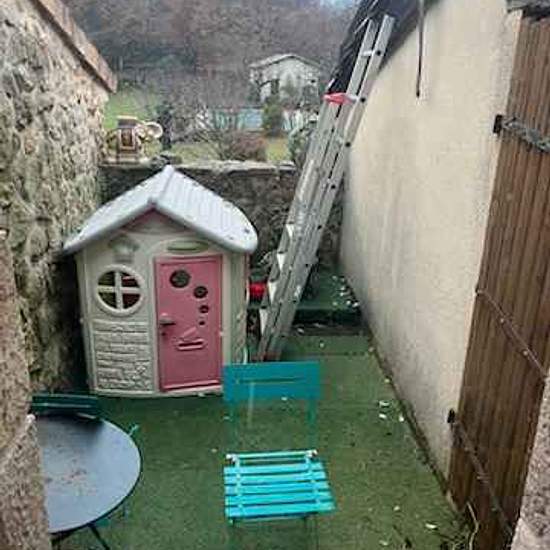 A la location: maison avec deux chambres,une terrasse ,un petit extérieur,toilette séparée et une cave,chauffage centrale ,pompes à chaleur et eau compris dans le loyer ,une cheminée refaite en début d'année assuré de bonne soirée avec un gain de 4 degrés a chaque flambé.disponible le 1er Février 2026 ,nous sommes les locataires actuelles,nous assurons les visites.merci