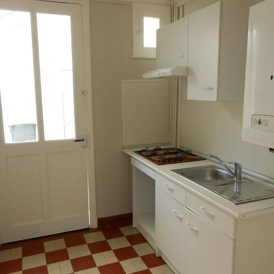 Maison de ville offrant salon-séjour, coin cuisine, wc; à l'étage 2 chambres et un bureau, sdb. Cour et cave. Loyer 545eur hors charges / m + 30 eur / m taxe om + entretien de chaudière disponible au 27 février 2026.
