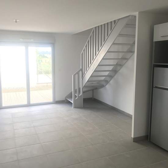 À saint sauveur 31790 rue léopold sédar senghor, nous vous proposons une villa t3 de 59.38 m² avec jardin de 16 m² et 2 places de parking dans la résidence le hameau saint sauveur. Cette villa se compose : au rez-de-chaussée : d'une entrée donnant sur une cuisine équipée et meublée (plaques de cuisson vitrocéramiques, hotte, meubles hauts et bas, emplacement pour un lave-vaisselle et four) ouverte sur le séjour donnant sur une belle terrasse en bois et un jardin d'environ 16 m². Un cellier et un wc avec lavabo complète les prestations du rez...