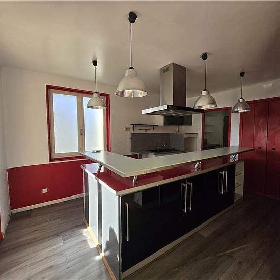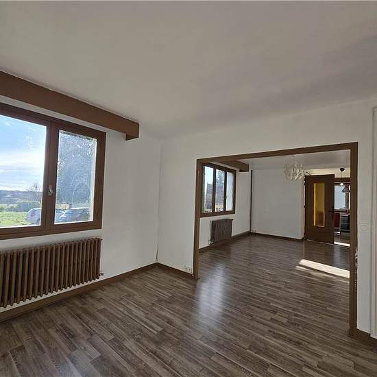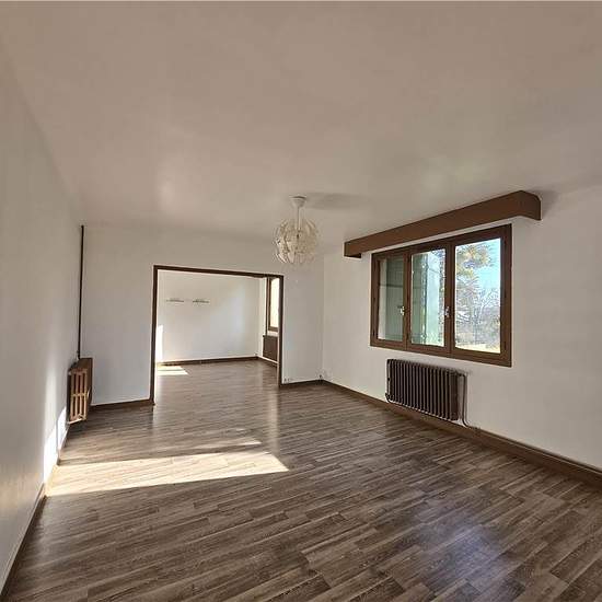 Maison de plain-pied comprenant un grand salon, une cuisine séparée meublée et équipée avec cellier, une salle d'eau, un WC séparé et deux chambres. Dressing dans le couloir et chaufferie avec chaudière fioul + bois. Grand terrain de 1200m² avec terrasse et abri voiture. Les charges comprennent la taxe d'ordures ménagères et l'entretien de la chaudière. Réf. 2615-1. Honoraires de 712 € TTC à la charge du locataire comprenant 267 € TTC pour l'état des lieux. Loyer de base 815 €/mois. Provision sur charges 35 €/mois, régularisation annuelle. D...
