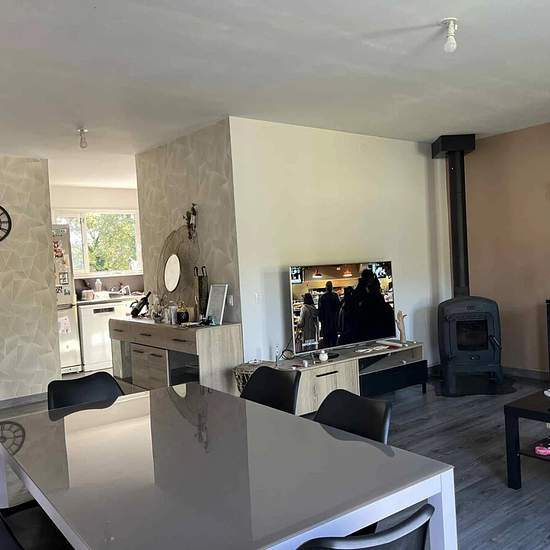 A louer maison, au calme maison comprenant : Une pièce de vie avec coin cuisine aménagée équipée, un cellier, 2 chambres, salle de bain et wc. Garage attenant. Le tout sur un grand terrain clôturé sur le arrière avec terrasse et piscine tubulaire semie-enterrée. La maison comporte quelques meubles. Contacter Delphine au Dossiers soumis a la garantie des loyers impayés.