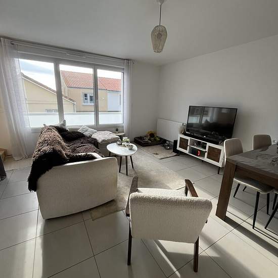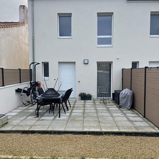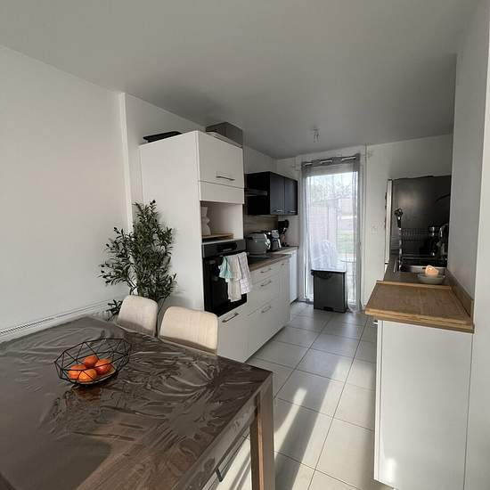 Dans petit collectif de 3 maisons neuves, proche toutes commodités. D'une surface de 60,49 m² habitable, le bien se compose d'une entrée sur une pièce de vie lumineuse avec sa cuisine ouverte aménagée et équipée (plaque induction et hotte), un WC et une lingerie. A l'étage : un palier desservant 2 chambres dont une avec placard, et une salle d'eau avec WC. Terrasse privative de 22 m² et jardin collectif. En sous-sol : 2 places de stationnement. Libre le 01/04/2026 Honoraires de 672 € TTC à la charge du locataire comprenant 192 € TTC pour l'é...
