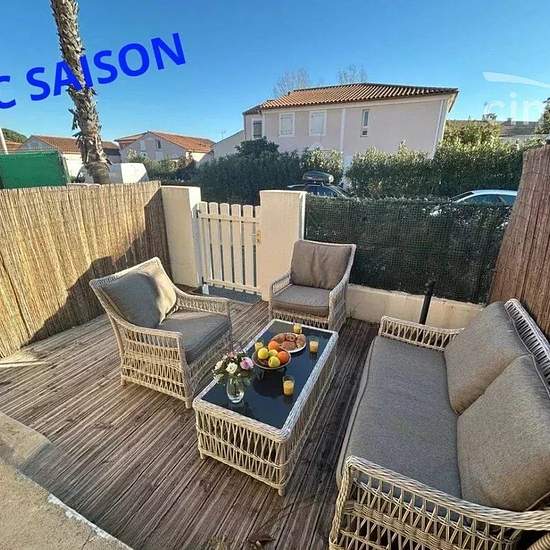LOCATION SAISONNIERE Joli pavillon conçu pour 6 personnes dans une résidence privée avec terrasse composé d'un salon séjour (canapé convertible) avec cuisine ouverte, un grand toilette (avec lave linge et évier), à l'étage deux chambres avec lit doubles (140) et une salle d'eau. Vous apprécierez sa terrasse ensoleillée avec son joli salon de jardin, barbecue à charbon, store banne. Ménage et linge de lit inclus (possibilité de louer les kits de serviettes à l'agence). Internet, clim réversible, place de parking privée, lave vaisselle. PRESTA...