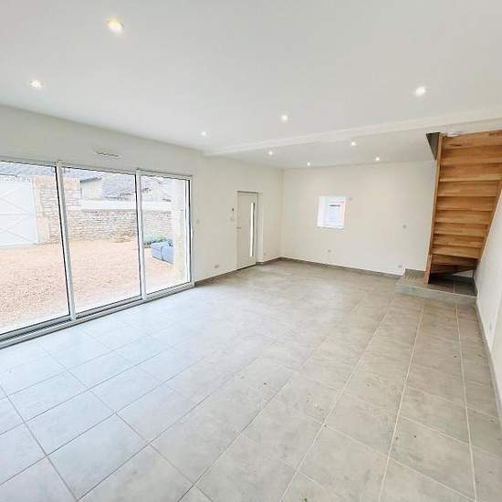 Dans un environnement calme et agréable, découvrez cette maison T4 en duplex entièrement refaite à neuf. Au rez-de-chaussée, elle se compose d'une belle pièce de vie avec coin cuisine meublé et équipé (plaques de cuisson, four et hotte), ouvrant sur une cour extérieure privative et fermée. Vous trouverez également un cellier, un WC indépendant ainsi qu'une cave. À l'étage, un palier dessert trois chambres et une salle d'eau avec WC. La maison dispose de deux places de stationnement privatives. Confort assuré grâce à un chauffage par pompe à ...