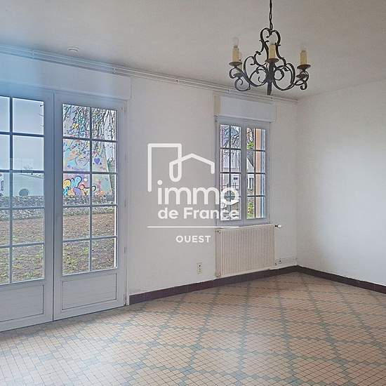 013-06L - E3843- Maison de plain-pied comprenant cuisine (évier deux bacs avec égouttoir sur meuble 2 portes et hotte), séjour-salon, salle d'eau, WC, 3 chambres et chaufferie. Grenier au dessus, garage avec atelier et cave. Cour, terrasse et jardin Disponible de suite. Pour tout renseignement, veuillez contacter l'agence IMMO DE FRANCE OUEST EVRON au .