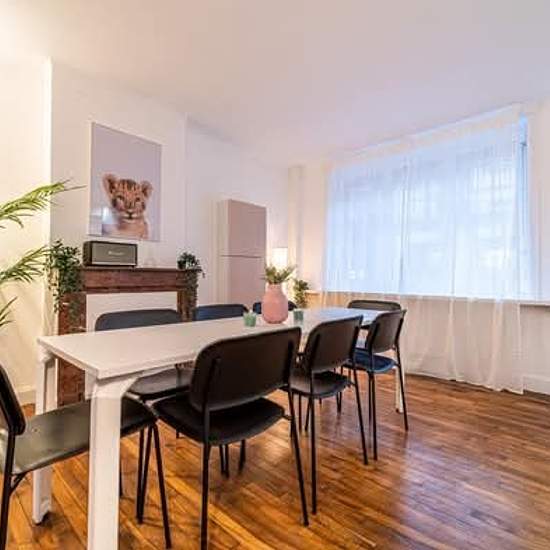 Maison avec jardin en coliving - Lambersart - éligibles aux APL - 2 chambres avec salles de bains privées prochainement disponibles Cette maison entièrement rénovée et meublée possède de grands espaces communs, 3 cuisines équipées, 2 salles à manger, 2 salons, 1 coworking, une buanderie, un joli jardin ensoleillé, un garage à vélo 15 chambres avec salles de bains et wc privatifs (dont 1 studio) Les chambres font de 12 à 21m2 et sont entièrement meublées chacune d'un lit double, d'une literie hôtelière, d'un bureau, de rangement ...