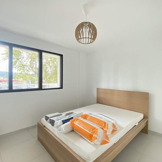 Aix en Provence. La Tour d'Aygosi. A proximité immédiate du Parc de la Torse, des écoles, des commerces, des axes autoroutiers et du centre ville, dans une résidence sécurisée avec ascenseur, au 1er étage , appartement de 79. 85m2 entièrement meublé et rénové avec des matériaux de qualité et de grand standing situé au 67 cours Gambetta. Il se compose d'un séjour avec cuisine américaine équipée et meublée donnant sur une grande terrasse, de trois chambres, de deux salles d'eau et d'un WC séparé. Climatisation réversible, placards de rangement...