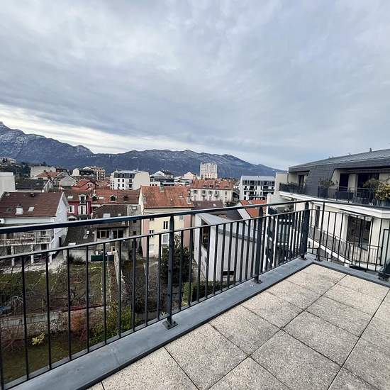 TYPE 4 de 114m² à louer à AIX LES BAINS - RESIDENCE BACHELARD - 130 TRABOULE BACHELARD - Dernier étage - 3 terrasses - Cuisine équipée - Cave et Garage. Ce TYPE 4 de 114 m² se situe au 5ème et dernier étage avec ascenseur d'une résidence de bon standing idéalement située au calme en centre ville, de la place du marché. Il se compose d'ene entrée, un séjour ouvrant sur une terrasse Ouest de 30 m², une cuisine équipée, 3 chambres dont deux avec terrasses privatives (8 et 6 m²), un cabinet de toilette et une salle de bains. Cave et Garage compl...