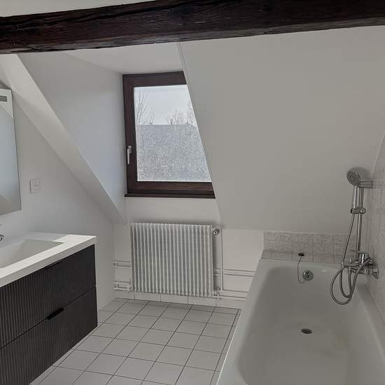 Charmant F4 en Duplex au coeur d'Andlau, vue sur l'abbaye. Rénové avec soins, il offre sur 85 m2 au sol (66 m2 habitables) : Au 1er niveau : - Séjour, - Cuisine séparée équipée, - 2 chambres de 14,5 m2 au sol, l'une avec placards - Salle de bain avec fenêtre, wc séparés Au 2ème étage : - Mezzanine (12,5 m2 au sol) Chauff individuel au gaz. JARDIN au bord de l'eau, partagé entre 3 logements PARKING dans le jardin. CAVE partagée. Loyer 750,- EUR + 60,- EUR avance de charges avec régularisation annuelle. Honoraires d'agence à la charge du locat...