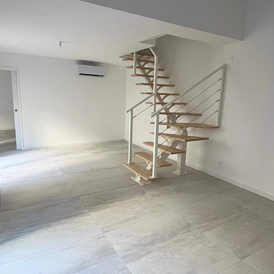 A louer, Arles, appartement neuf en rez de chaussée et en duplex. D'une superficie de 103 m2 se composant d'un hall d'entrée, une cuisine équipée/ séjour donnant sur une cour, 2 chambres et une salle d'eau, wc séparé et a l'étage une chambre avec salle d'eau et wc. Idéalement situé proche du centre ville, des commerces et place de parking. Logement entièrement climatisé pour un confort optimal.