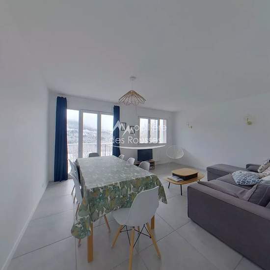 Ref 1690SD - BELLEFONTAINE Superbe appartement de 4 pièces loué non meublé, au premier étage d'une copropriété et dans un environnement calme. Ce logement entièrement rénové et baigné de lumière, est composé comme suit : belle pièce de vie avec cuisine équipée, 3 chambres, un cellier, une salle de bains, et toilettes séparés. Vous profiterez également du balcon de 13 m² exposé Sud, et avec une vue totalement dégagée. Une cave ainsi qu'une place extérieure privative complètent le bien. Disponible immédiatement. Visite virtuelle disponible sur...
