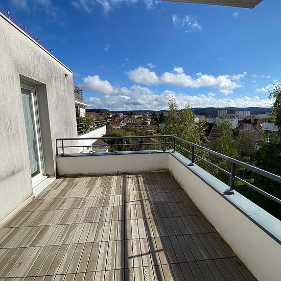 T4 lumineux avec Garage, 21 rue Antonin Fanart, Quartier Montrapon, 85 m², 2° étage avec ascenseur, séjour avec Terrasse, cuisine équipée, 3 chambres, balcon, rangements, cave, chauffage ind gaz, dble vitrage, interphone, LIBRE