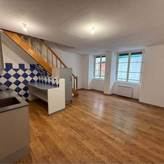 À louer, appartement de 78 m². Cet appartement duplex est situé dans le centre ville de Marvejols, proche de toute commodité dans un immeuble avec interphone. Il se compose d’une pièce de vie lumineuse avec cuisine équipée (four, plaque et hotte). L’appartement dispose de 3 chambres une en bas et deux à l’étage, d’une salle de bain, d’un WC séparé ainsi que d’un petit cellier. Le loyer est de 550€ hors charges + 40€ de charges (eau, poubelles, électricité des communs) soit un loyer de 590€ CC. Cet appartement convient parfaitement à un coupl...