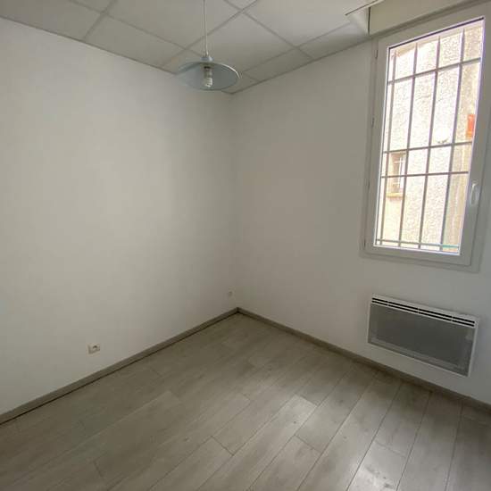 Appartement comprenant séjour, cuisine aménagée et équipée (four, plaques, hotte) avec baie vitrée sur terrasse et jardinet, belle salle d'eau aménagée, bureau, dégagement, 2 chambres, wc. Terrasse, jardinet clos d'environ 190 m² et remise. Rénové avec goût, au calme. Libre mi-juin.