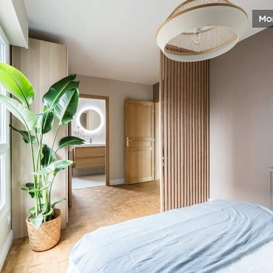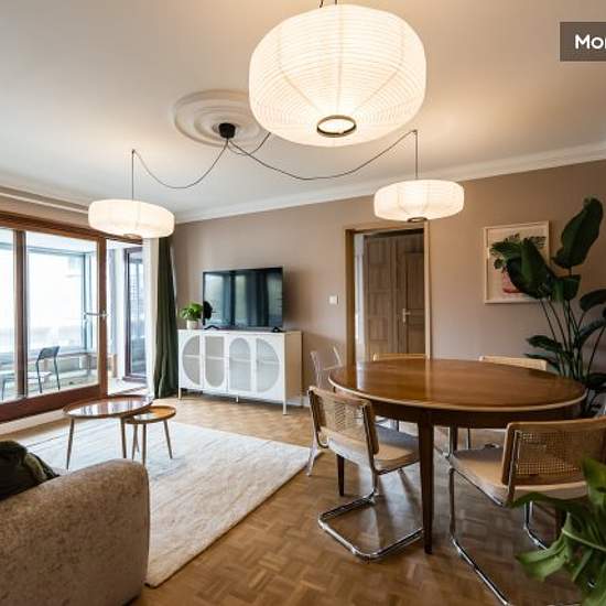 Enjoy all the comforts of a bright, modern whole flat in Caluire-et-Cuire, 10 min from Lyon. This 105 m² T4 on the 2ᵉ floor of a quiet residence has been fully renovated and decorated with care. Living space Large living room with flat-screen TV, table, chairs and comfortable sofa Ultra-equipped modern kitchen (oven, microwave, hob, extractor fan, dishwasher, fridge, freezer, washing machine, tumble dryer, full set of crockery) Entrance hall with plenty of storage space Three bedrooms Bedroom 1: double bed, desk, wardrobe Bedroom 2: double b...