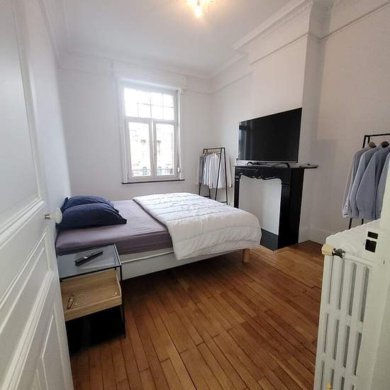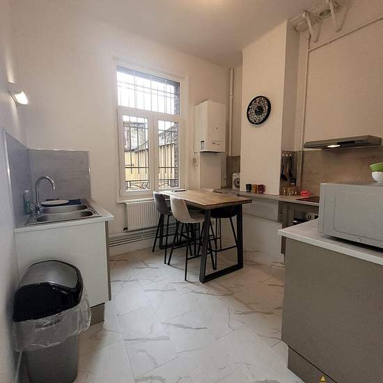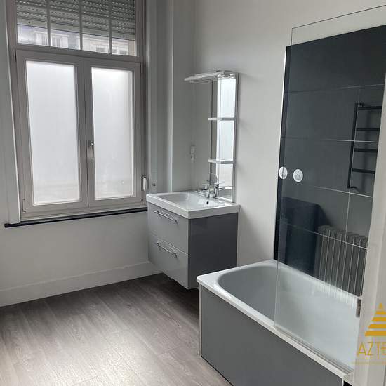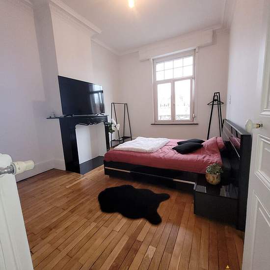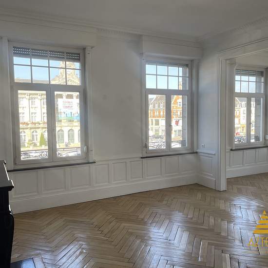PLEIN CENTRE DE CAMBRAI Appartement avec vue sur la grande place de style haussmannien , belle hauteur de plafond, rosaces , parquet chene massif , cheminées en marbre. Situé au 2 ème étage avec ascenseur cet appartement de 111 m2 est composé : Hall d'entrée , une cuisine équipée indépendante , une buanderie , deux chambres , une salle de bain , un wc avec lave mains. Double vitrage Chauffage gaz individuel Cave de 20 m2 Visiophone Les charges de 80 € comprennent l'eau du logement et les charges de copropriété des communs l'électricité et le...