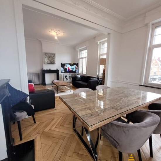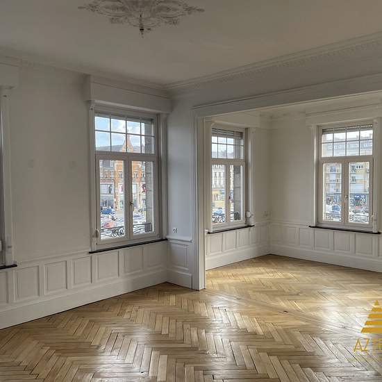PLEIN CENTRE DE CAMBRAI Appartement avec vue sur la grande place de style haussmannien , belle hauteur de plafond, rosaces , parquet chene massif , cheminées en marbre. Situé au 2 ème étage avec ascenseur cet appartement de 111 m2 est composé : Hall d'entrée , une cuisine équipée indépendante , une buanderie , deux chambres , une salle de bain , un wc avec lave mains. Double vitrage Chauffage gaz individuel Cave de 20 m2 Visiophone Les charges de 80 ? comprennent l'eau du logement et les charges de copropriété des communs l'électricité et le...