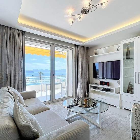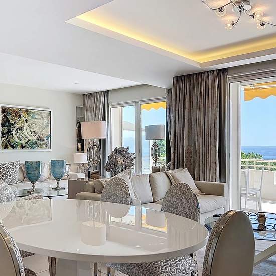 Cannes Croisette - situé dans une résidence de renom à deux pas de l'hôtel Martinez, un magnifique appartement entièrement rénové avec de belles prestations. Cet appartement de 90m² est composé d'un hall d'entrée avec placard et un WC invité, un double séjour ouvert sur une large terrasse offrant une vue panoramique sur la baie, une salle à manger, une belle cuisine séparée très bien équipée. Une chambre de Maître en suite avec lit double 1.80, salle de douche, WC et nombreux placards. Une deuxième chambre avec lit double 1.40, une salle de ...