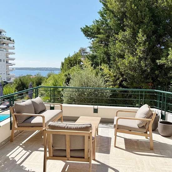 3 PIECES- VUE MER ET TERRASSE - Villa Appartement à Cannes dans la Californie située dans une résidence gardiennée, au calme avec vue mer. Une surface habitable de 100 m2, entièrement rénové avec des prestations luxueuses. Il comporte 3 chambres et trois salles de douche avec WC, une terrasse de 25 m2 et un jardin de 300 M2. Domotique, alarme, garage et piscine dans l'immeuble. Le tarif inclut les charges de 350 €/mois sauf l'électricité et l'internet. Afficher le téléphone