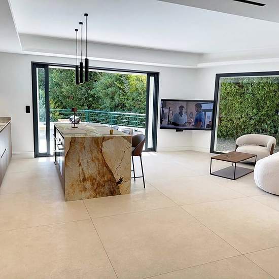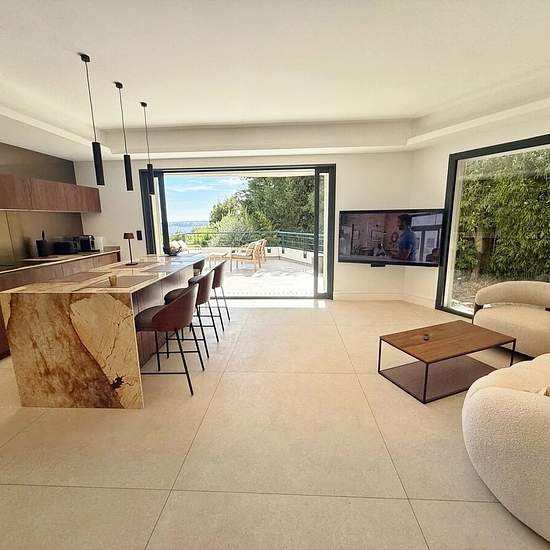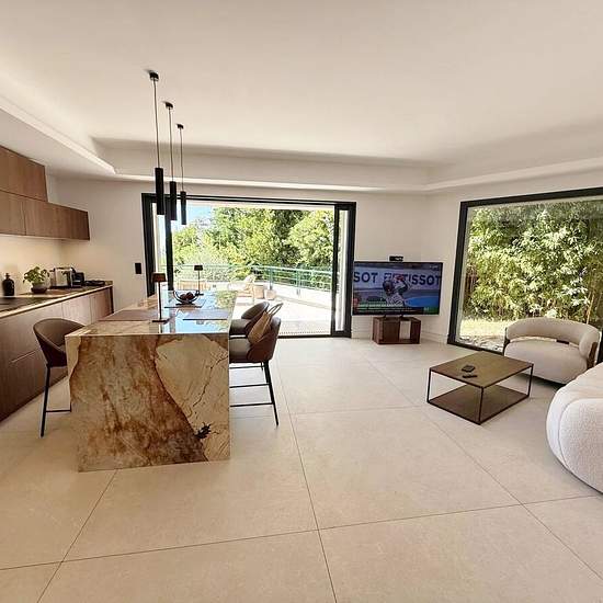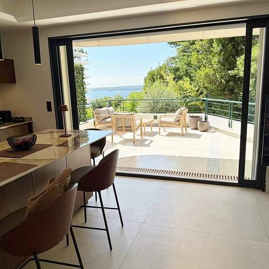 3 PIECES- VUE MER ET TERRASSE - Villa Appartement à Cannes dans la Californie située dans une résidence gardiennée, au calme avec vue mer. Une surface habitable de 100 m2, entièrement rénové avec des prestations luxueuses. Il comporte 3 chambres et trois salles de douche avec WC, une terrasse de 25 m2 et un jardin de 300 M2. Domotique, alarme, garage et piscine dans l’immeuble. Le tarif inclut les charges de 350 €/mois sauf l'électricité et l'internet.