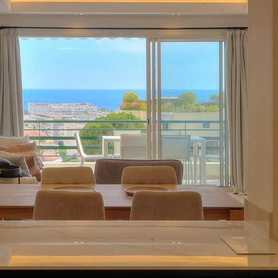 A propos de ce bien Au sein d'une résidence sécurisée au calme située en Basse Californie, ce beau 4 pièces entièrement refait à neuf avec de belles prestations, se compose d'un hall d'entrée, une cuisine semi-séparée entièrement équipée, un salon et salle à manger donnant sur une terrasse d'angle exposée sud vue mer, 3 chambres, 2 salle de bains. Une cave. Places de parking collectif toujours disponibles dans la résidence.