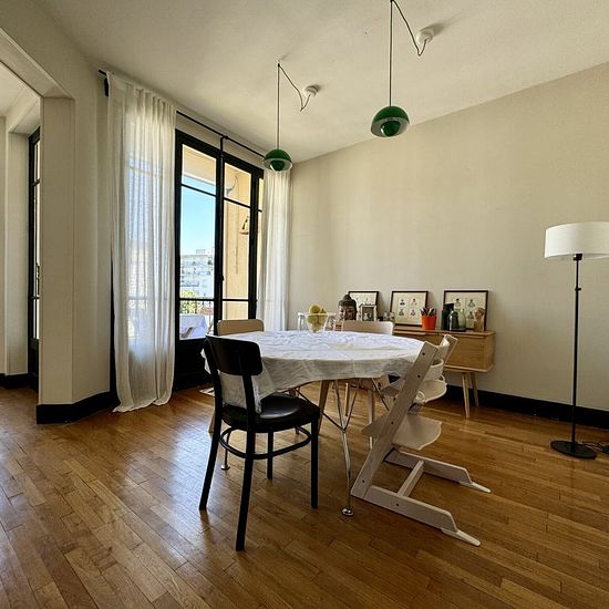 G90 - Entre le centre-ville de Chamalières et le centre ville de Clermont-Ferrand, dans une impasse (impasse Pasteur), un appartement situé au 2ème étage sans ascenseur de type T4 en excellent état de 96,50 m². Il comprend une grande entrée avec des placards de rangement, une cuisine semi-équipée (placards, plaque de cuisson, hotte et four), un salon et une salle à manger ouverts sur un balcon, deux grandes chambres (12,71 m² et 13,94 m²), un dressing pouvant acceuillir un espace bureau, une salle d'eau avec une douche à l'italienne, une bua...