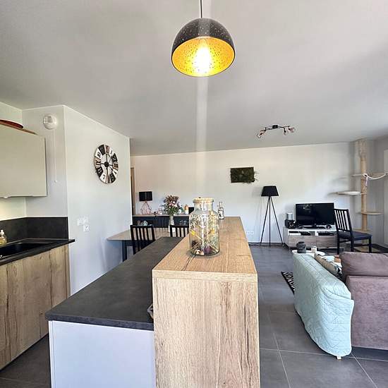 Chambery - proche centre-ville - résidence signature - t4 à louer de 87.84 m² au 1er étage avec ascenseur comprenant : entrée, cuisine équipée (four, plaque électrique, hotte, lave-vaisselle) ouverte sur séjour et donnant sur terrasse de 18.23 m², 3 chambres, salle de bains, salle d'eau, wc. Un garage double de 25.32 m², une cave. Disponible le 01 / 02 / 2026. Loyer : 1397 + 103 de charges (copropriété, eau chaude, chauffage et tom inclus). Honoraires : 966 .
