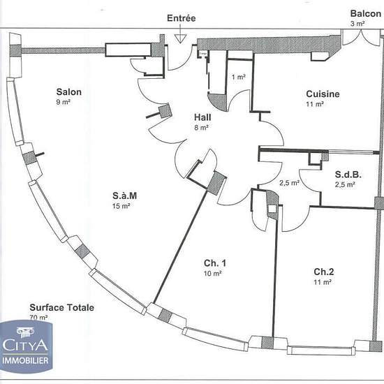 CITYA GENERALE IMMOBILIERE Appartement à CHAMBERY - T4 de 71,78 m² Nous vous proposons en exclusivité dans la commune de Chambéry, un appartement de type 4 non meublé de 71,78 m² au 1er étage avec ascenseur d'une copropriété bien entretenue et sécurisée par la présence d'un interphone. L'appartement est composé d'un hall d'entrée, d'une cuisine aménagée et équipée (éléments de rangements hauts et bas, plaques, hotte, four), d'un double séjour, de deux chambres et d'une salle de bains. L'appartement comporte de nombreux rangements. Il est lou...