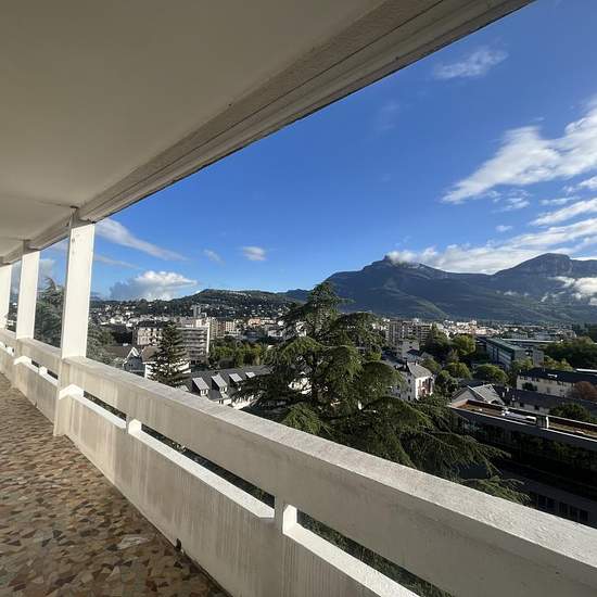 CHAMBERY - Les Charmettes : dans une résidence de standing, calme et verdoyante, au 4ème et dernier étage, un appartement très lumineux de 97,07 m² composé ainsi : un hall d'entrée avec placard, une cuisine séparée, un double séjour, un dégagement, deux chambres avec placards, une salle de bains et un WC séparé. Un grand balcon orienté Est avec vue dégagée complète l'appartement. Le bien est loué avec une cave. Il y a des possibilités de stationnement dans la résidence (parking commun privatif). Le chauffage et l'eau chaude sont inclus dans ...