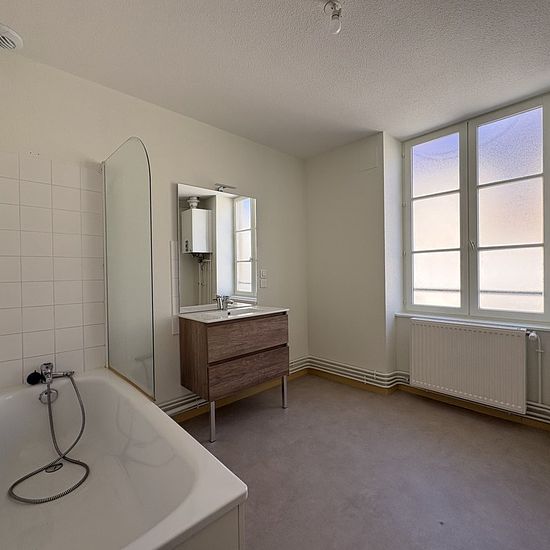 CHARLIEU Rue Grenette - Bel appartement entièrement rénové de type 4 d'une surface habitable de 104 m2 composé d'une vaste pièce de vie avec cuisine équipée (four, plaque, hotte, frigo), un dégagement avec placard, 3 chambres, une salle de bains et W.C. Un local vélo commun et une cave individuelle. Chauffage au gaz individuelle. Disponible de suite. Loyer : 690EUR + prov/charges 20EUR FA:496.60EUR Pour plus d'annonces, rendez-vous sur notre site giraudimmo.