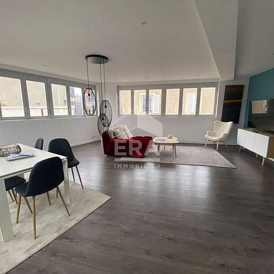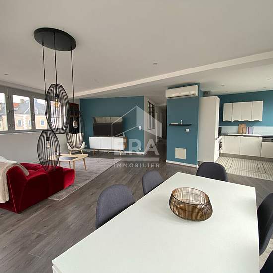 A Louer appartement T4 meublé, situé en hyper centre ville de Châteauroux, comprenant : Vaste pièce principale avec cuisine ouverte aménagée et équipée, 2 chambres, dressing , salle de bains (douche et baignoire) et salle d'eau, 2 wc, buanderie. Appartement très lumineux, parfait état et belles prestations. Loyer 900Euro + 250Euro provisions sur charges (chauffage collectif, eau froide, ordures ménagères, entretien et electricité des communs). Pour plus de renseignement merci de contacter l'agence ERA CHAPELOT IMMOBILIER au