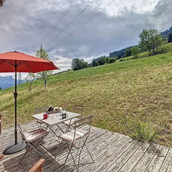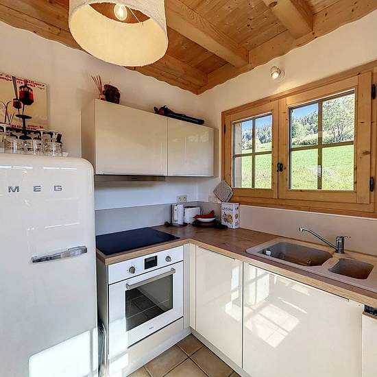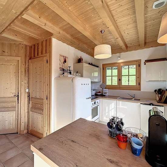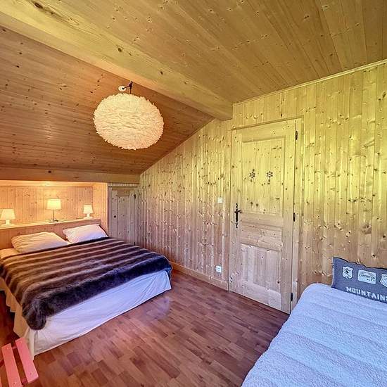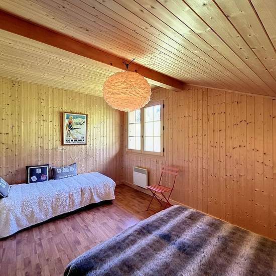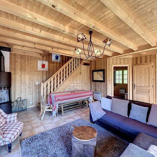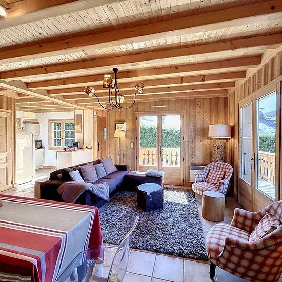 Situé à 2 Km centre de Combloux et à 500m du télécabine de la Princesse : Demi-chalet en duplex de 75 m2 avec wifi composé de : Séjour avec coin cuisine équipée (Four, LV, Frigo, plaques induction, micro-onde…) Une chambre-salon TV avec convertible (140) avec douche attenante WC séparé A l’étage : une chambre avec un lit de 140 et un lit de 80 Une autre chambre avec un lit de 140 Salle de bains avec WC Local à ski et lave linge en Rez de Jardin. (Cet appartement est équipé de couettes). - A régler lors de votre arrivée : Taxe de séjour et ca...