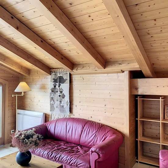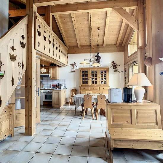 Duplex de 80 m2 environ composé de : D’une entrée, placard, une belle pièce de vie avec coin salle à manger, coin cuisine toute équipée (lave-vaisselles, lave linge avec sèche linges, four, micro-ondes, bouilloire, cafetière, frigo...) donnant sur un balcon terrasse face au Mont Blanc, un salon, une salle de bains, un toilette indépendant, une salle de douche, une chambre avec un lit de 140, une deuxième chambre avec un lit de 160 et une troisième chambre avec un lit mezzanine de 140, sur la mezzanine avec un lit d'une personne et un lit tir...