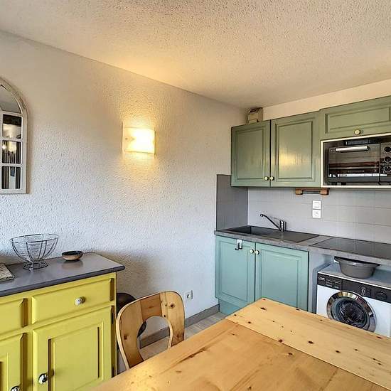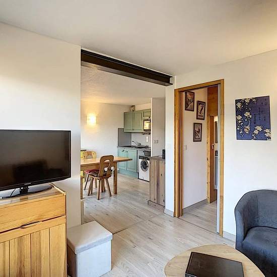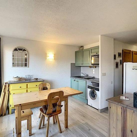 Joli 2 pièces + coin cabine d'environ 46m2 à proximité du centre village de Combloux composé : d'une entrée avec placards, coin cabine avec lits superposés de 90, une chambre avec lit de 140, une salle de bain, un wc séparé, séjour avec coin cuisine équipée (frigo, four gril, mini lave-linge...) donnant sur une terrasse en RDJ, un salon avec balcon, une chambre avec lit de 140 et coin douches. Loué avec casier à skis et 2 places de parking en sous-sol. - A régler lors de votre arrivée : Taxe de séjour et caution logement par carte bancaire u...