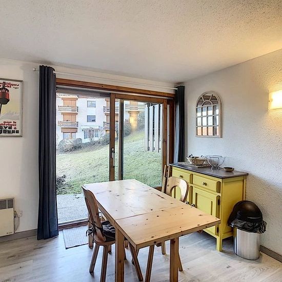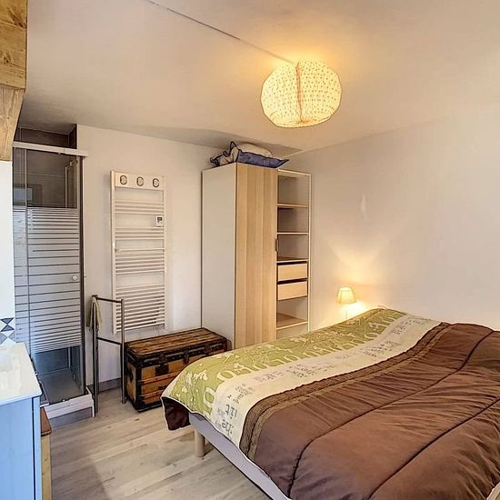 Joli 2 pièces + coin cabine d'environ 46m2 à proximité du centre village de Combloux composé : d'une entrée avec placards, coin cabine avec lits superposés de 90, une chambre avec lit de 140, une salle de bain, un wc séparé, séjour avec coin cuisine équipée (frigo, four gril, mini lave-linge...) donnant sur une terrasse en RDJ, un salon avec balcon, une chambre avec lit de 140 et coin douches. Loué avec casier à skis et 2 places de parking en sous-sol. - A régler lors de votre arrivée : Taxe de séjour et caution logement par carte bancaire u...