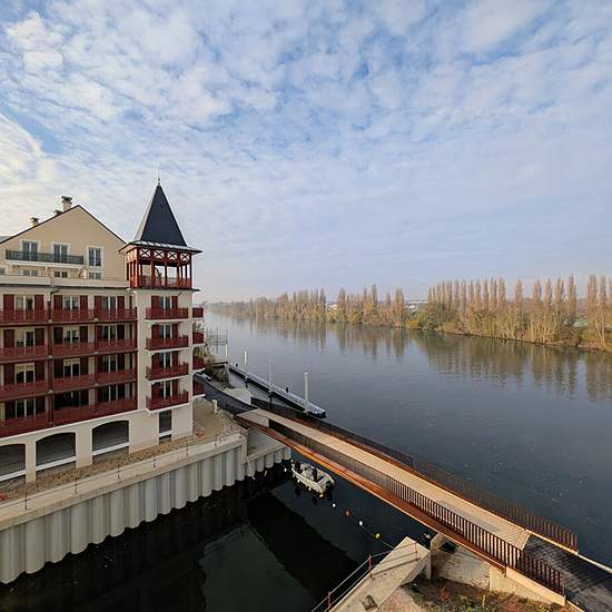 CORMEILLES-EN-PARISIS - Au sein des nouvelles résidences d'exception La Marina, un superbe appartement 4 pièces de 82 m² offrant fonctionnalité et charme. Il se compose d'un vaste séjour avec cuisine américaine, 3 chambres, une salle de bain, une salle d'eau, ainsi que deux WC. Deux places de stationnement couvertes complètent ce bien. Vous serez séduits par son confort moderne et son emplacement privilégié qui offre une vue sur la Seine. Disponible immédiatement.