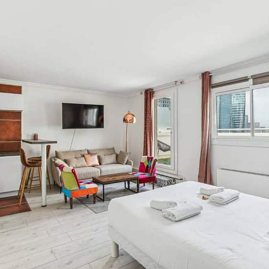 Bienvenue dans cet appartement unique de 83 m², idéalement situé sur le parvis de La Défense, offrant un cadre de vie moderne et confortable en plein cœur du quartier d’affaires le plus dynamique de Paris. Cet appartement exceptionnel, doté d’une vaste terrasse, est parfait pour une famille ou des colocataires recherchant à la fois espace et commodités. En entrant dans cet appartement, vous découvrirez un agencement spacieux et bien pensé. Il se compose de trois chambres lumineuses et confortables, idéales pour des moments de repos ou de tra...