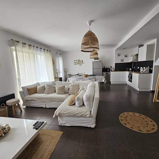 RARE! Proche toutes commodités (écoles, commerces) appartement en Rez-de-jardin situé dans une résidence de 3 lots en Syndic bénévole, construction de 2016, composé d'un accès indépendant par une grande allée couverte ( idéal vélo/moto) , Séjour cuisine d'environ 45m2 avec cuisine meublée semi-équipée, 3 chambres ou 2 chambres + bureau, une buanderie, un dressing, un WC indépendant, une salle de bain avec baignoire et douche avec meuble double vasque, un jardin de 150m2 exposé Sud. Chauffage électrique / climatisation dans le séjour. Simplem...